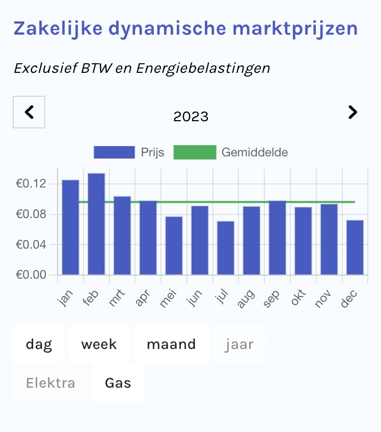De interactieve grafiek op de pagina "Dynamische zakelijke energie" is een fijn element en geeft helder inzicht in de prijzen. Bij het gebruik van dit element is er een korte laadtijd waardoor de pagina verspringt en er tijdelijk geen grafiek te zien is. Dit is eenvoudig op te lossen door het element een vaste hoogte te geven. Overweeg ook een soepelere overgang te maken tussen de verschillende views, door bijvoorbeeld een laad animatie te tonen.