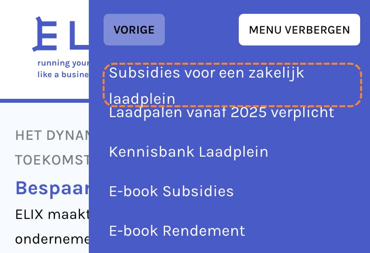 Op tablets is er een probleem met de primaire navigatie. Deze desktop-navigatie is ontworpen voor interactie met een muis, maar op tablets moeten bezoekers op een menu item drukken. Dit leidt ertoe dat bij het drukken de pagina al wordt geladen, waardoor onderliggende pagina's niet via het menu bereikbaar zijn.