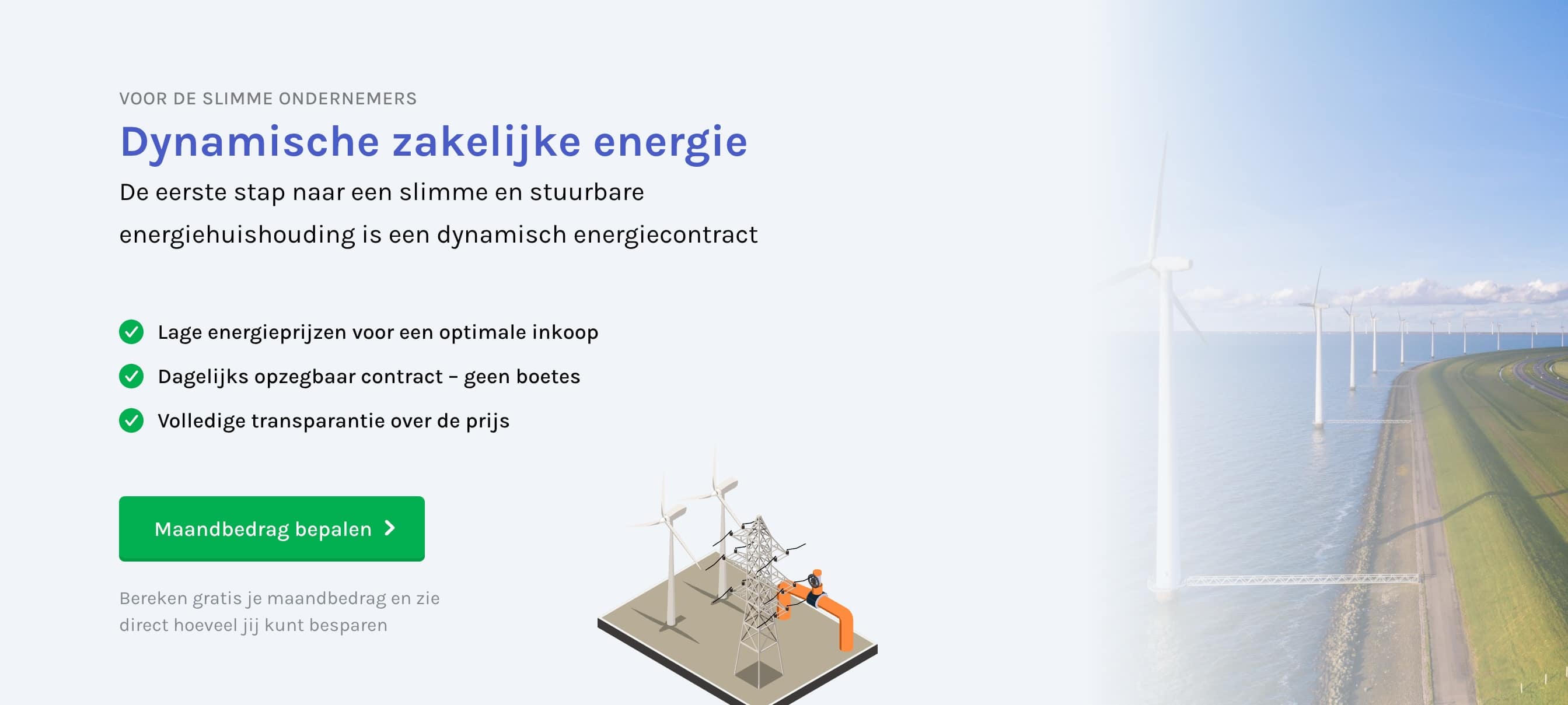 In de hero componenten, met name op de homepage, wordt een hoop gecommuniceerd. Er is een titel, inleiding, USP-lijst, button, tekstlink en dan nog een afbeelding met veel kleine tekst erin. Op andere pagina's wordt hier een kleine afbeelding van een e-book of windmolens naast geplaatst. Dit komt alles bij elkaar wat rommelig over.