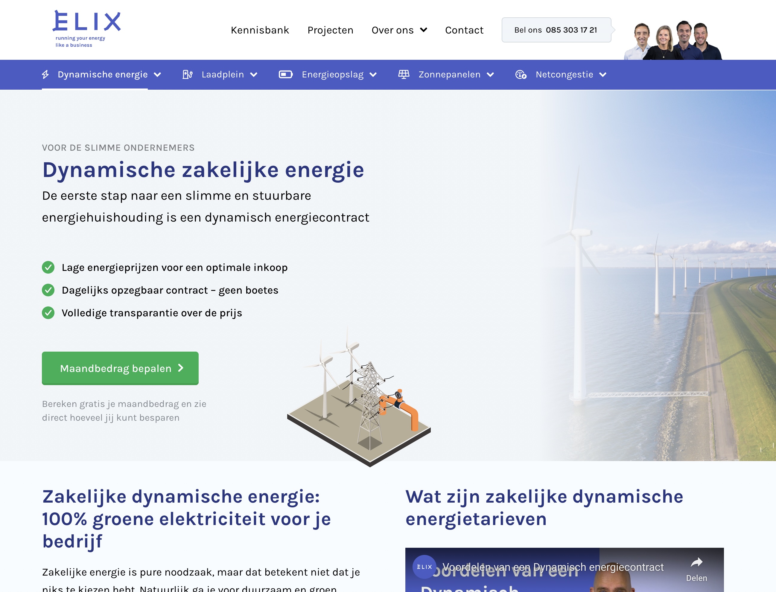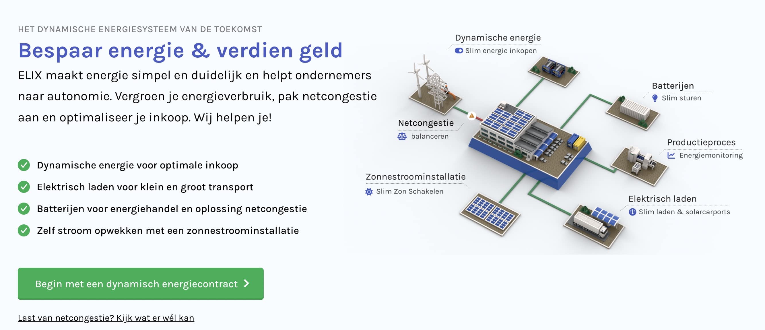 De tekst van de pay-off "running your energy like a business" in het logo is vrij klein en onleesbaar. Overweeg om deze wat groter te plaatsen of deze alleen in de footer op te nemen als tekstelement.